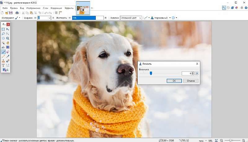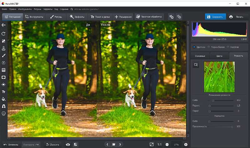 Бесплатная программа, в которой можно повысить четкость всего изображения. Делается это просто: откройте фото, перейдите в меню «Эффекты» -> «Для фотографий» -> «Резкость». Появится новое окно. Выставьте в нем нужные параметры, нажмите «ОК» и сохраните результат.