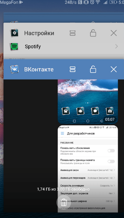 Безусловно, параллельная работа нескольких приложений в фоне ускоряет доступ к ним, но вместе с этим она может заметно тормозить работу старых смартфонов. Особенно, если оперативной памяти на устройстве и так не слишком много. Если вы заметили замедление работы гаджета, попробуйте почаще закрывать программы, которыми в данный момент не пользуетесь.