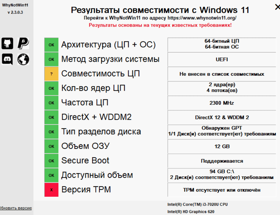 Также можно воспользоваться приложением WhyNotWin11 от энтузиастов: