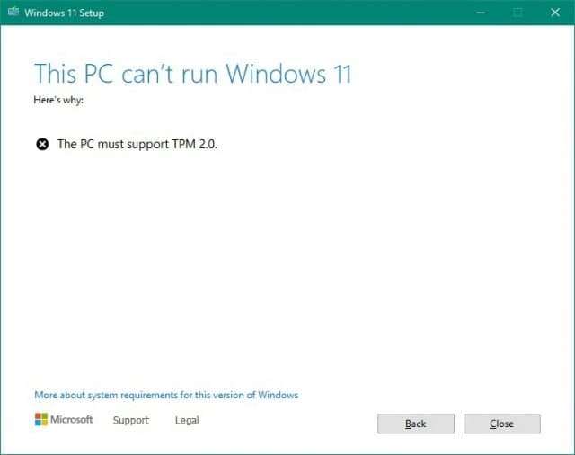 Если на вашем ПК нет TPM модуля или Secure Boost, и вы все равно попробуете установить Windows 11 — система выдаст следующую ошибку:
