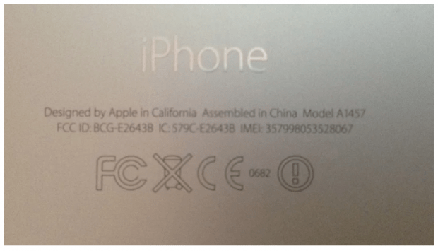 IMEI можно обнаружить на спинке некоторых старых моделей — SE, 5, 5C, 5S, 6, 6+.