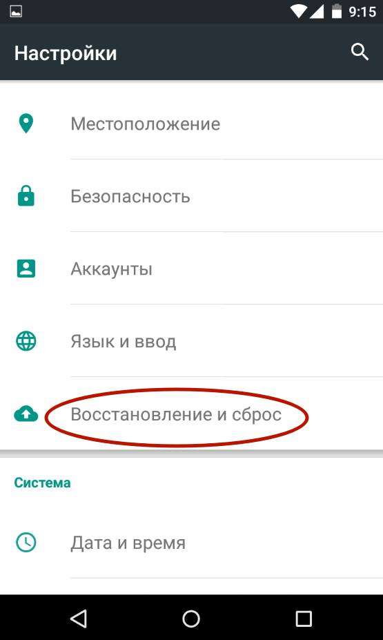 - Зайти в настройки старого устройства и открыть пункт «Восстановление и сброс»