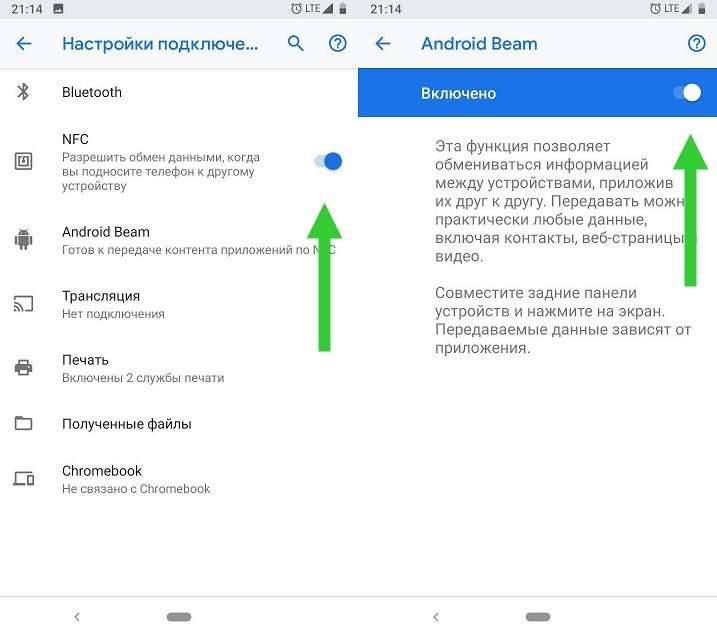 - После включения NFC станет доступным пункт Android Beam, который нужно также активировать.
