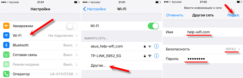 И подключиться к ней можно будет, только если вручную сначала правильно ввести название, а затем еще и пароль. Если сделать ошибку в имени или пароле — доступа не будет.