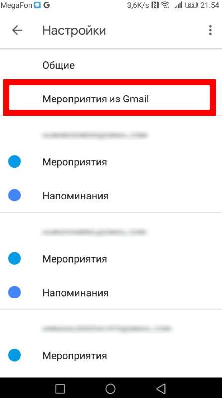 - Зайдите в «Мероприятия из Gmail”.