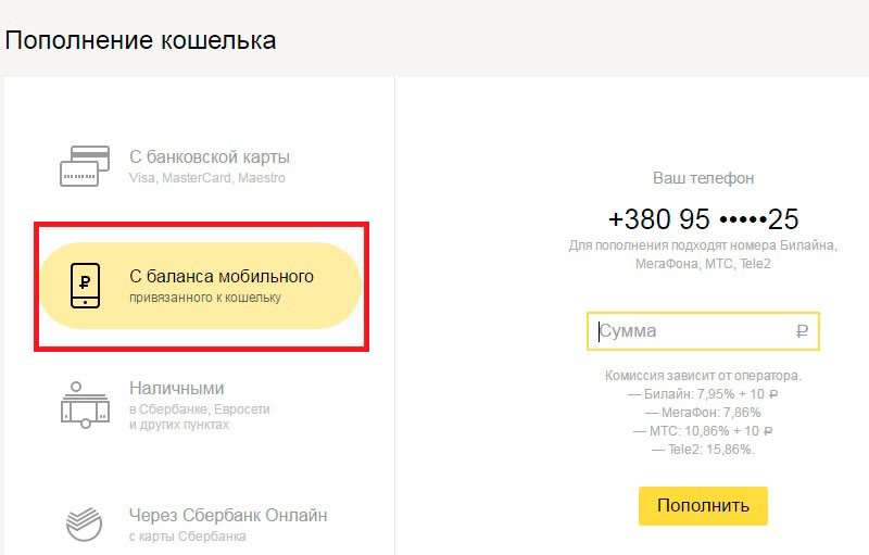- «С баланса мобильного, привязанного к кошельку».