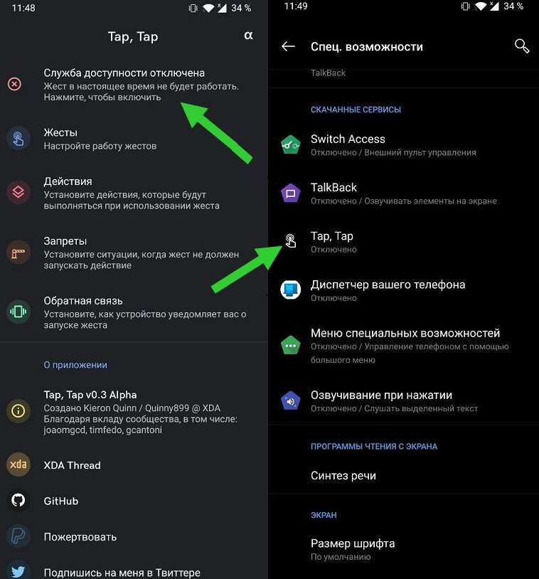 После установки Tap, Tap необходимо открыть приложение, перейти во вкладку «Служба доступности» и выдать разрешение на его работу в настройках специальных возможностей. Для корректного функционирования программы также рекомендуем добавить ее в исключения в настройках энергособережения и оптимизации памяти, чтобы система не вычищала Tap, Tap из фонового режима.