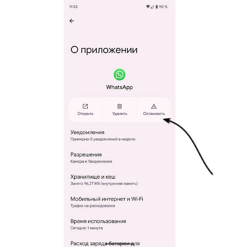 - Теперь приложение должно принудительно закрыться, все его фоновые процессы, службы и уведомления будут остановлены.