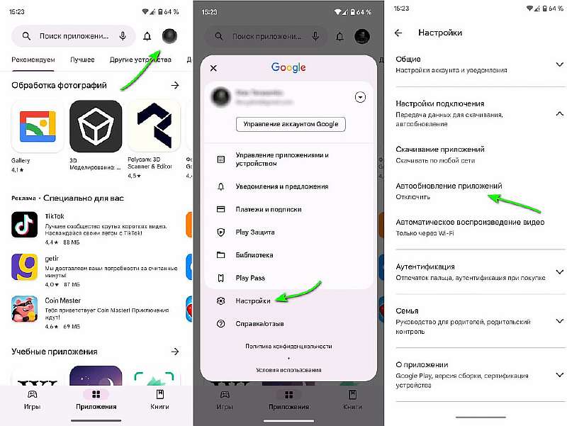 На старых смартфонах лучше вообще отключить автоматическое обновление приложений, которое может вызвать проблемы. Для этого откройте Плей Маркет, нажмите на иконку профиля в правом верхнем углу, выберите «Настройки» > «Настройки подключения» > «Автообновление приложений» > «Отключено». А вот обновления Android от производителя, наоборот, игнорировать не стоит.