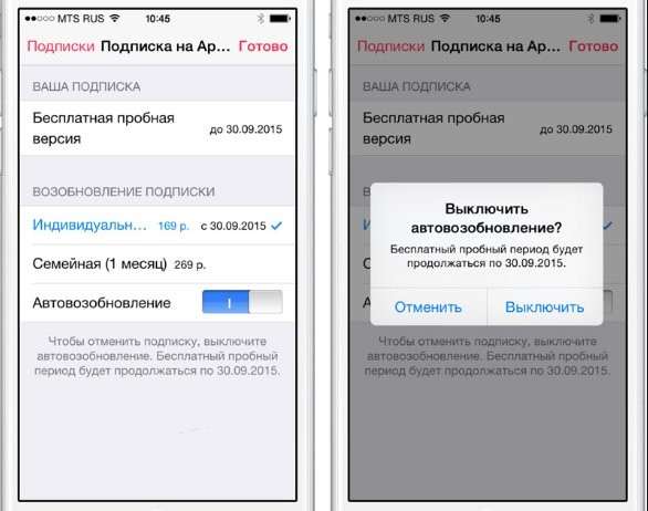 При отмене автовозобновления сервис будет отключен по окончании того периода, который уже был вами оплачен.