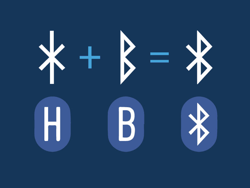 Многие видят в значке Bluetooth лишь стилизованную букву «B». На деле же все несколько сложнее. Разработчики из Швеции спрятали в значке кусочек славного прошлого своей страны. Та самая «B» — 2 совмещенные руны «хагалаз» и «беркана», соответствующие литерам «H» и «B» в латинском алфавите. А «H» и «B» — инициалы короля викингов Харальда Блатанда, носившего прозвище Синезубый. Это прозвище на английском и есть Bluetooth.