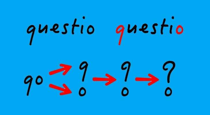 Языком письменности в средневековой Европе долго оставалась латынь. Специального знака, означающего вопрос, тогда не существовало, вместо этого в конце предложения просто дописывали слово questio. Не самое короткое слово, поэтому его постоянно сокращали до первой и последней буквы — «q» и «o». Причем «q» писали прямо над «o». Но из-за неразборчивого почерка многих авторов от «q» оставался один крючок, а от «o» — точка. Так в мире и появился известный всем знак.