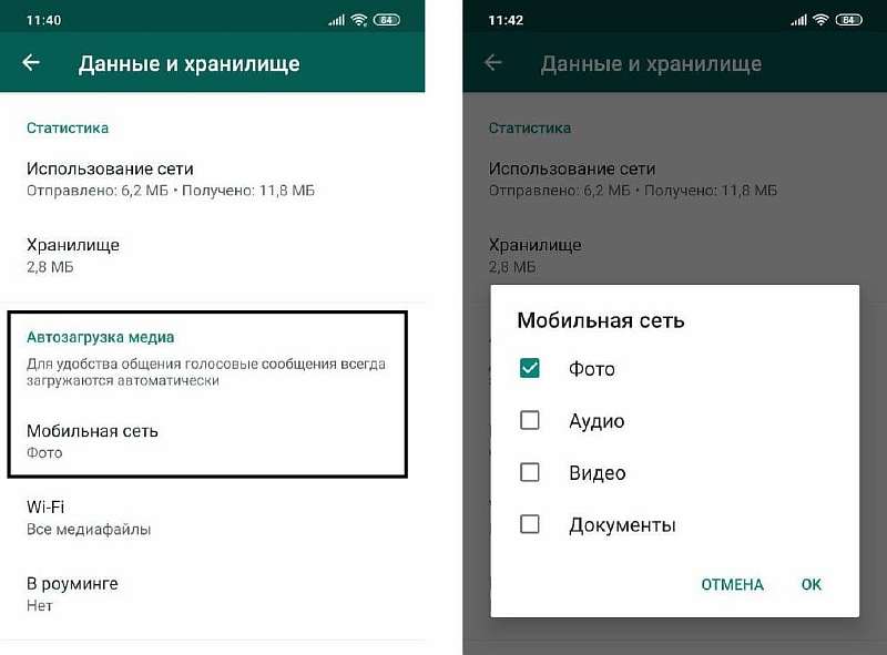 Чтобы отключить автозагрузку: заходим в Настройки, выбираем Данные и хранилище, в разделе Автозагрузка медиа выбираем Мобильная сеть, снимаем галочку с Фото, и жмем ОК.