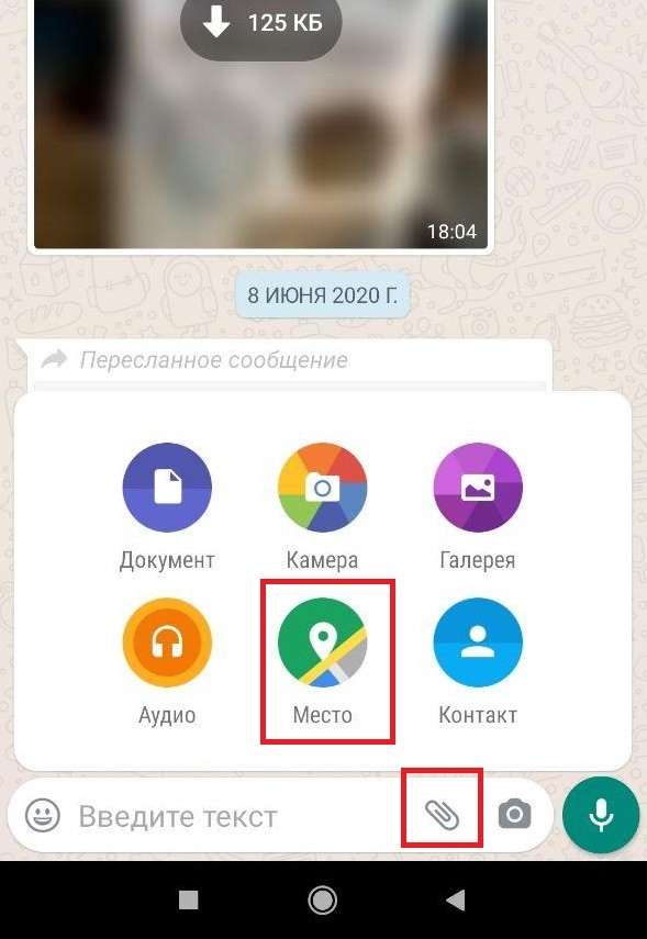 Чтобы это сделать: в переписке жмем скрепку (Прикрепить), и выбираем Место: