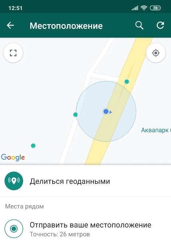 Здесь можно либо отправить свое местоположение, либо выбрать другую отметку на карте: