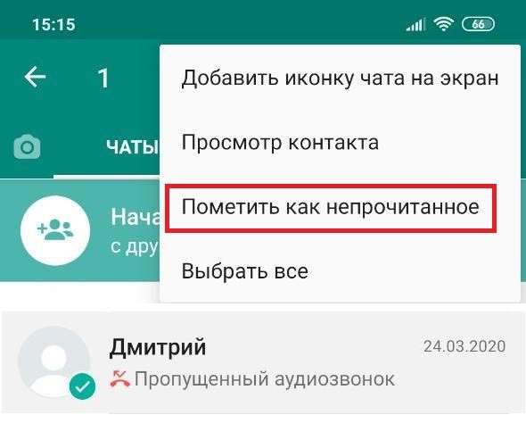 - Просто пометить сообщение непрочитанным. Для этого надо открыть нужный чат, спокойно прочитать месседж, затем выйти обратно в список диалогов, зажать пальцем на нужном контакте, и выбрать «Пометить как непрочитанное».