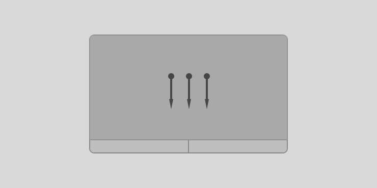 Содержимое сайтов в браузере, да и вообще любых окон, можно легко и удобно прокручивать вверх-вниз с помощью тачпада. Для этого нужно прислонить два пальца к сенсорной панели и провести ими вверх или вниз в зависимости от направления, которое вам нужно.