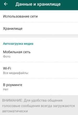 Если вы находитесь в роуминге или просто пользуетесь тарифом с лимитированным интернетом, разумно будет отключить автоматическое скачивание медиа-файлов, чтобы не тратить лишние деньги трафик, потраченный на бесполезные загрузки. Это делается в пункте Настройки > Данные и хранилище > Автозагрузка медиа.