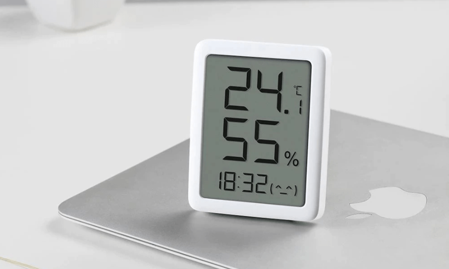 Чтобы понимать, какая она в квартире — можно взять такой вот гигрометр от Xiaomi. Экранчик на E-Ink чернилах показывает влажность, температуру и время. Работает год на одной батарейке и синхронизируется с приложением Mi Home.