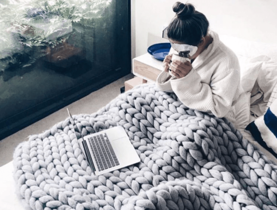 Толстенный — в 6 см толщиной — плед с крупной вязкой. Красиво смотрится, мягкий и очень теплый. Предлагается в куче разных расцветок, включая яркие, и в нескольких размерах.