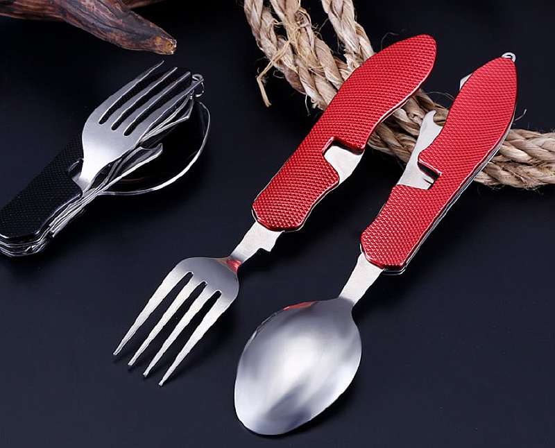 Когда идёшь на пикник, стараешься нагружать себя по минимуму. Хоть ложки с вилками и весят мало, но таскать их собой в рюкзаке всё равно не хочется. В такой ситуации на помощь придет универсальный складной инструмент 4 в 1: вилка, ложка, ножик и открывашка, в очень удобном и компактном формате.