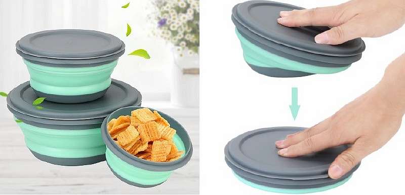 Набор из трех складывающихся тарелок разных размеров, которые практически не занимают места в сложенном виде. Посуда полностью герметична, подходит для хранения любой пищи, легко моется и плотно фиксируется открытом состоянии. Можно брать не только на пикник, но и закинуть в машину, чтобы иметь возможность перекусить в дороге.