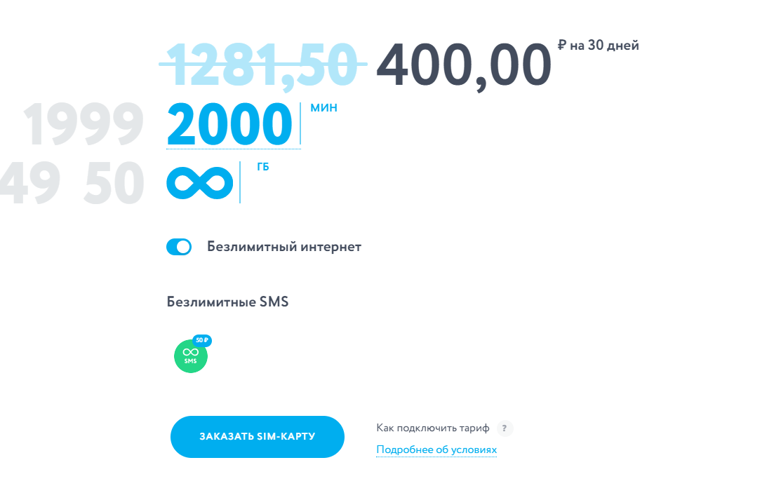 - Выставить максимальные значения в конструкторе, включая интернет, минуты разговора и SMS.