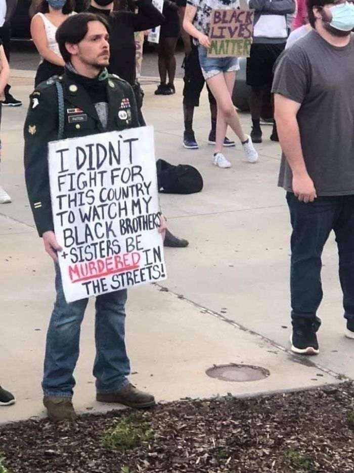 Белый ветеран боевых действий выражает протест: «Не для того я воевал за эту страну, чтобы видеть моих черных братьев и сестер убитыми на улицах.