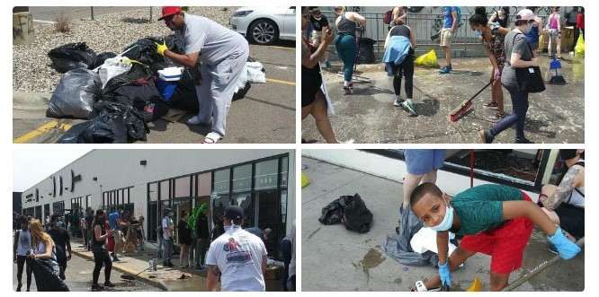 Жители Миннеаполиса наводят порядок на улицах после вчерашних беспорядков.
