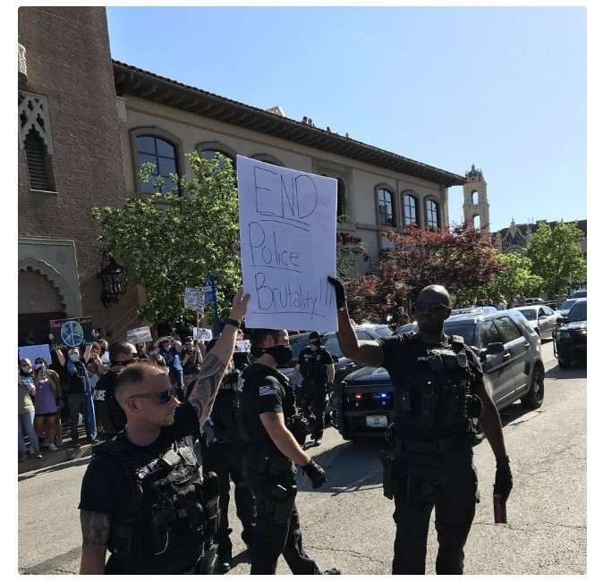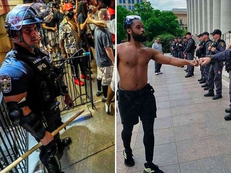 «Мы сильнее вместе», — с братским кулачком от протестующего полицейским при исполнении.