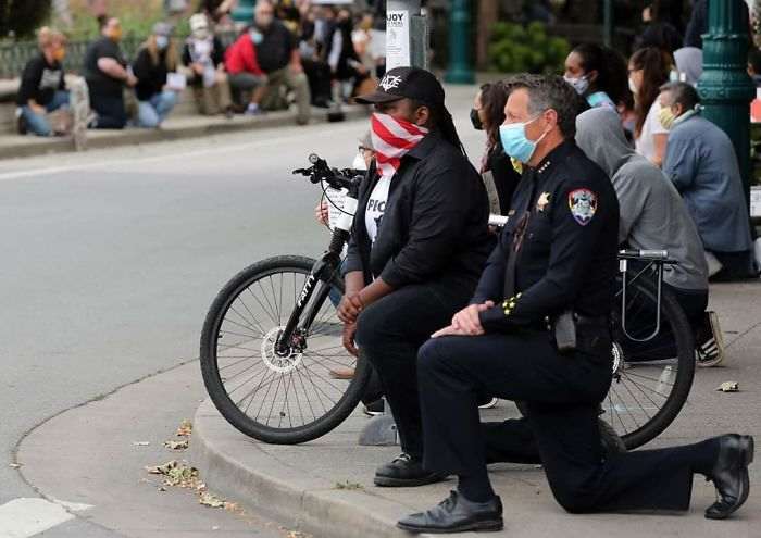 Начальник полиции из Калифорнии преклонил колено вместе с демонстрантами.