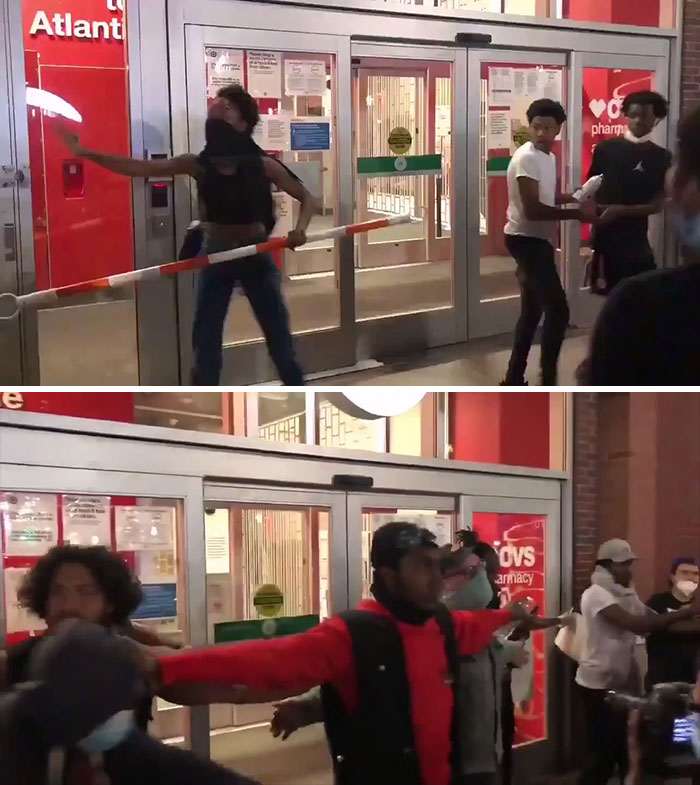 Чернокожие не дают агрессивно настроенным протестантам ограбить магазин.