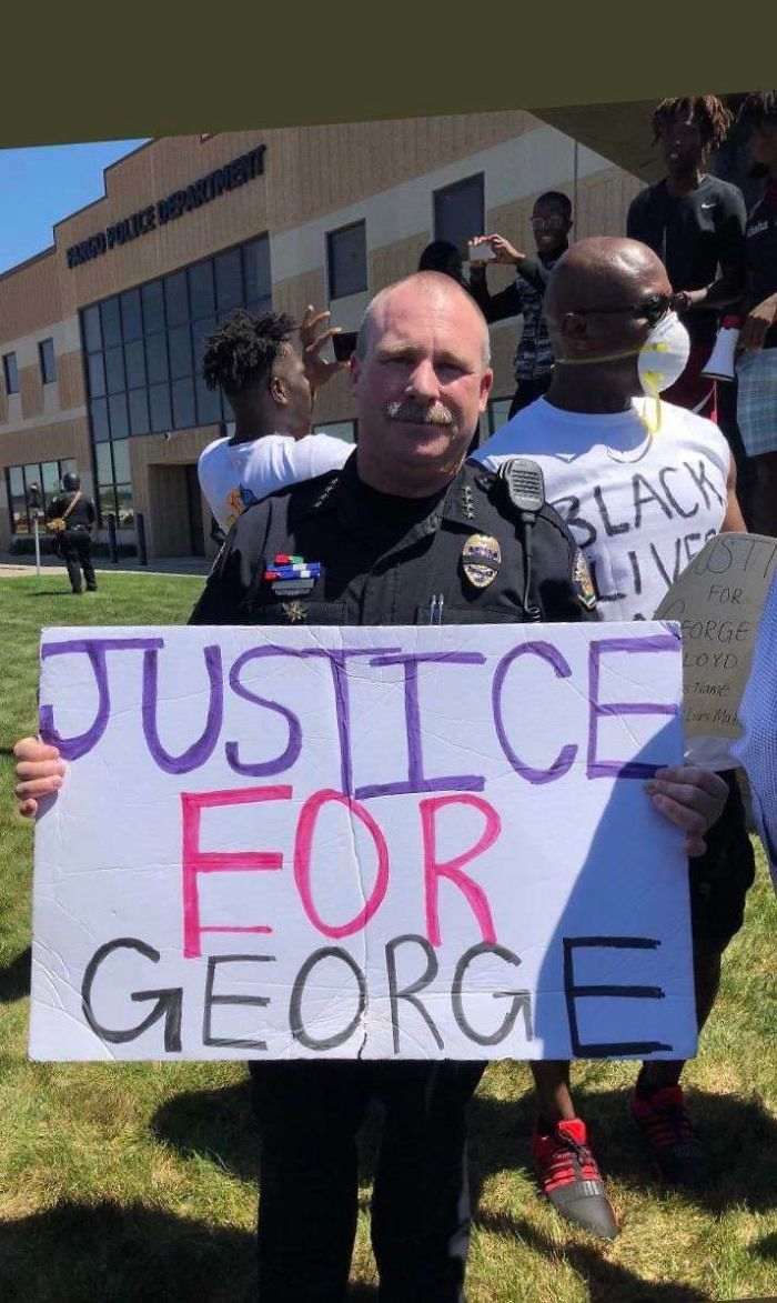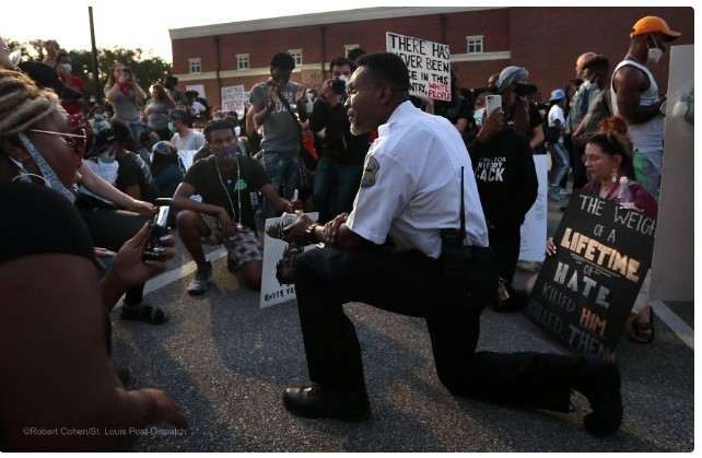 В память о погибшем Джордже Флойде капитан полиции Фергюсона опускается на одно колено.