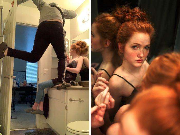 Сразу 30 человек решили поделиться тем, что осталось за кадром, и раскрыть все секреты своих постановочных фото. Посмотреть там действительно есть на что: странные позы, хитрые ракурсы, игры с освещением и реквизит, задействованный с максимально фантазией. Описаний мало, это нужно видеть. Предлагаем и вам ознакомиться с оборотной стороной настоящего искусства. Возможно, у вас получится позаимствовать несколько идей и для собственных крутых фотографий.