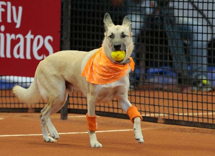 В бразильском теннисе мальчишкам, подающим мячи, помогают собаки из местных приютов. Так организаторы привлекают внимание к проблеме уличных животных и дают им шанс найти новый дом.