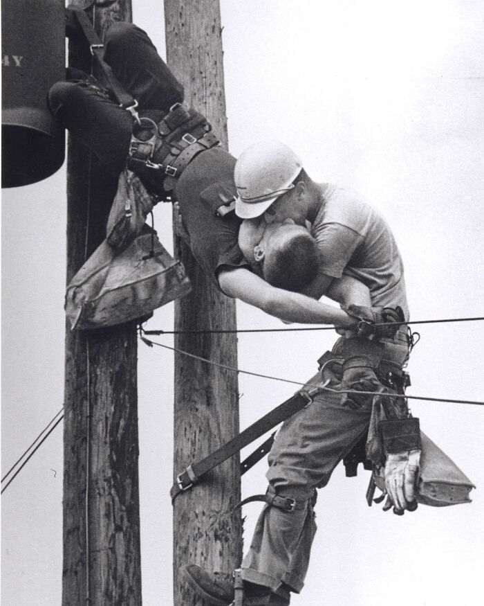 Когда фотограф Рокко Морабито ехал за рулем, он заметил электрика, висящего вверх ногами на ремне безопасности после удара электричеством. Он вызвал скорую помощь, а пока машина ехала, еще один электрик поднялся наверх и успешно спас своего коллегу, выполнив дыхание «рот в рот». Фотограф не упустил шанса сделать кадр, который принес ему авторитетную награду.
