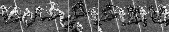 Серия фотографий Джона Робинсона демонстрирует расовый конфликт во время студенческого футбольного матча. Один из игроков трижды сбил с ног соперника, после чего получил удар локтем, который сломал ему челюсть.