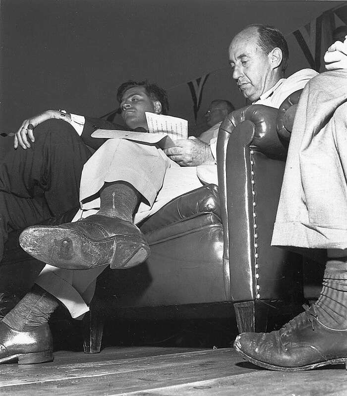 Этот кадр снят во время забастовки рабочих на заводе Ford в 1941 году. Судя по всему, Милтон Брукс сделал его очень быстро, спрятав камеру за пальто и смешиваясь с толпой, чтобы его не заметили. По словам фотографа, многие люди там хотели его избить.