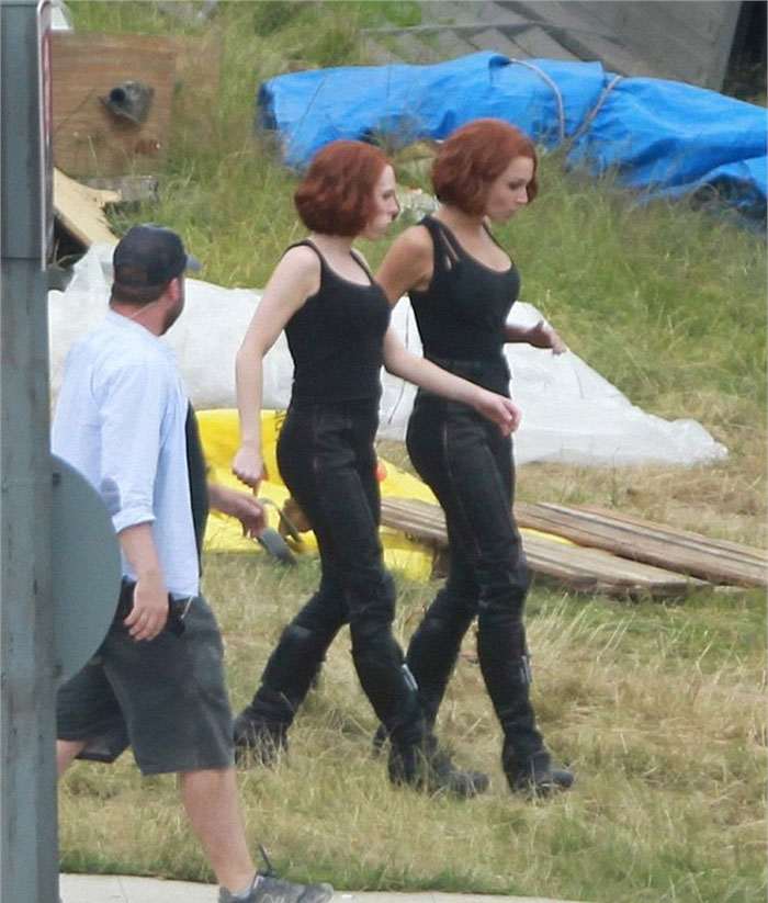 Скарлетт Йоханссон и дублер Хайди Манимейкер, «Мстители»