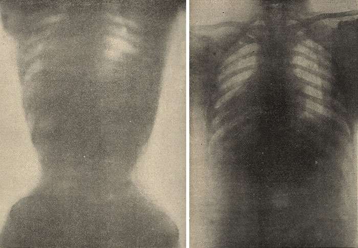 Рентген с демонстрацией изменений женского торса при регулярном использовании корсета, 1908 год
