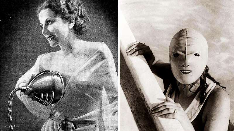 Маска для плавания, которая защищает нежную женскую кожу от солнца. 1920-е годы