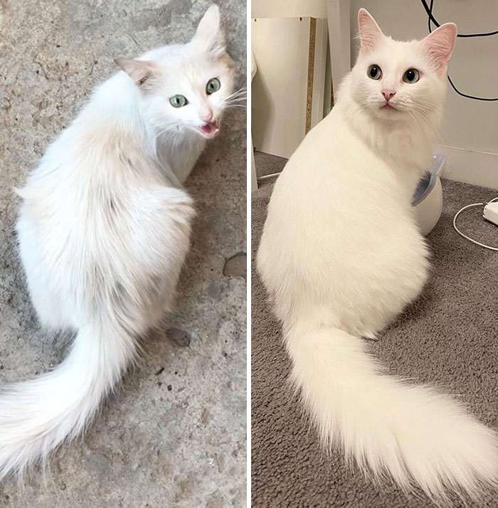 Кошку забрали с улицы. Фото до и после, разница в один год
