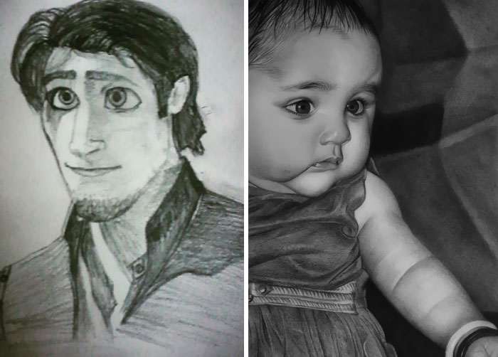 Сравнение 2015 и 2020 года. Прогресс в рисунках карандашом