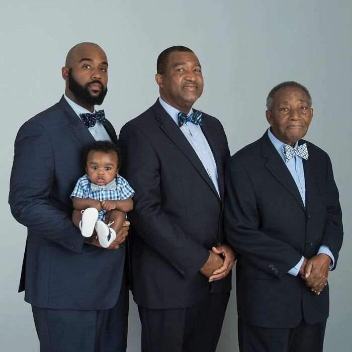 Четыре поколения мужчин одной семьи рядом друг с другом