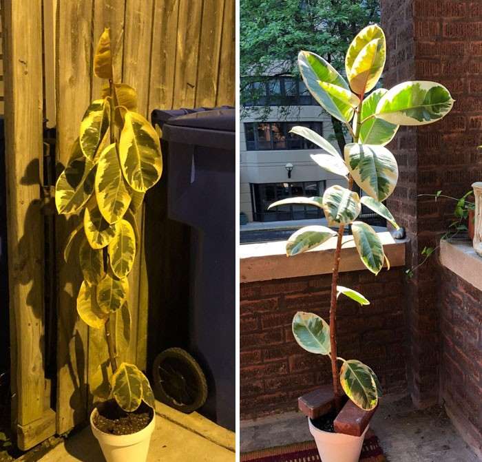 Спустя 5 дней, после того как фикус забрали с мусорки, он буквально ожил