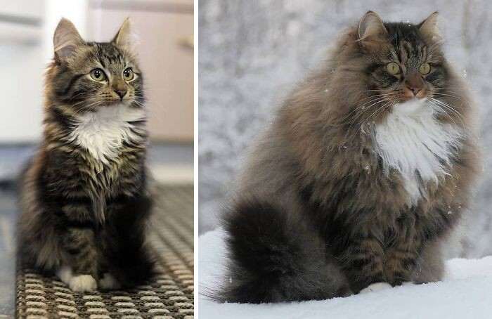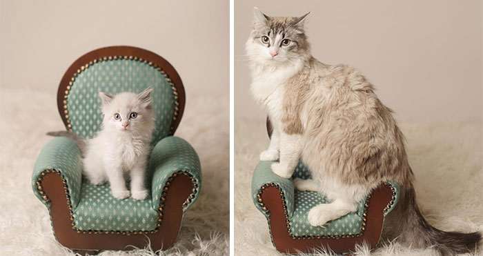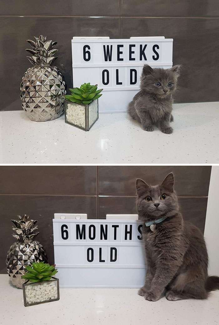 Видеть, как растут питомцы — отдельный вид удовольствия для их хозяев. К сожалению, когда имеешь дело с животными каждый день, то процесс их взросления не очень-то бросается в глаза. И в какой-то момент вместо крошечного пушистого комочка мы получаем взрослого кота или кошку, совершенно не понимая, когда одно успело превратиться в другое.