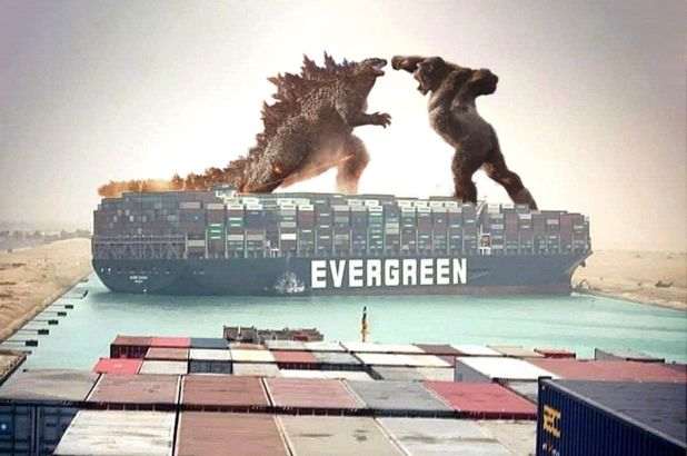 Пока судовладельцы полыхают, а экономику трясет, в интернете активно делают мемы с участием Evergreen. Некоторые из них — очень смешные.