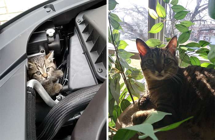 4-недельного котенка нашли под капотом. Теперь это домашний любимец – Инжир