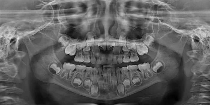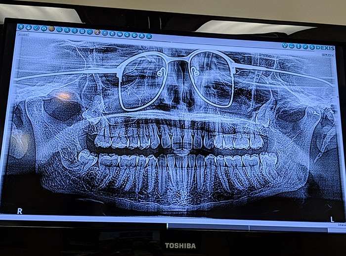 Панорамный рентген зубов. Кто-то забыл снять очки