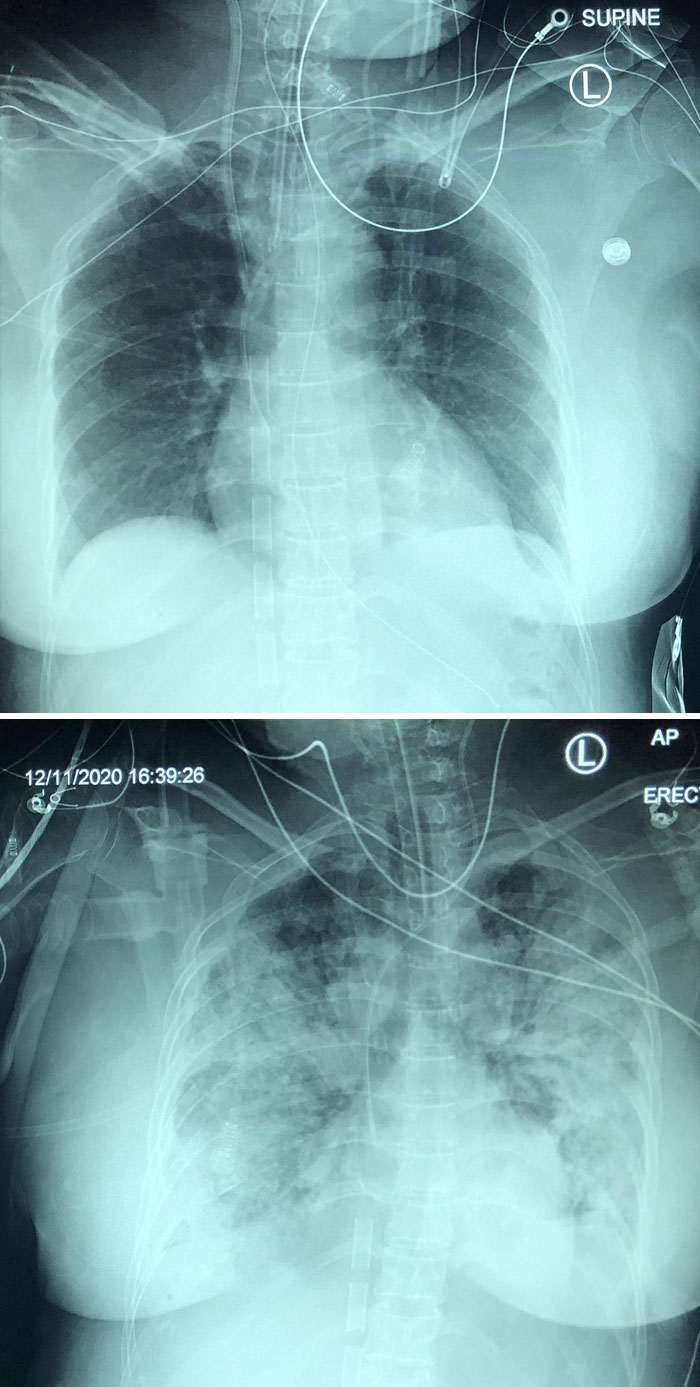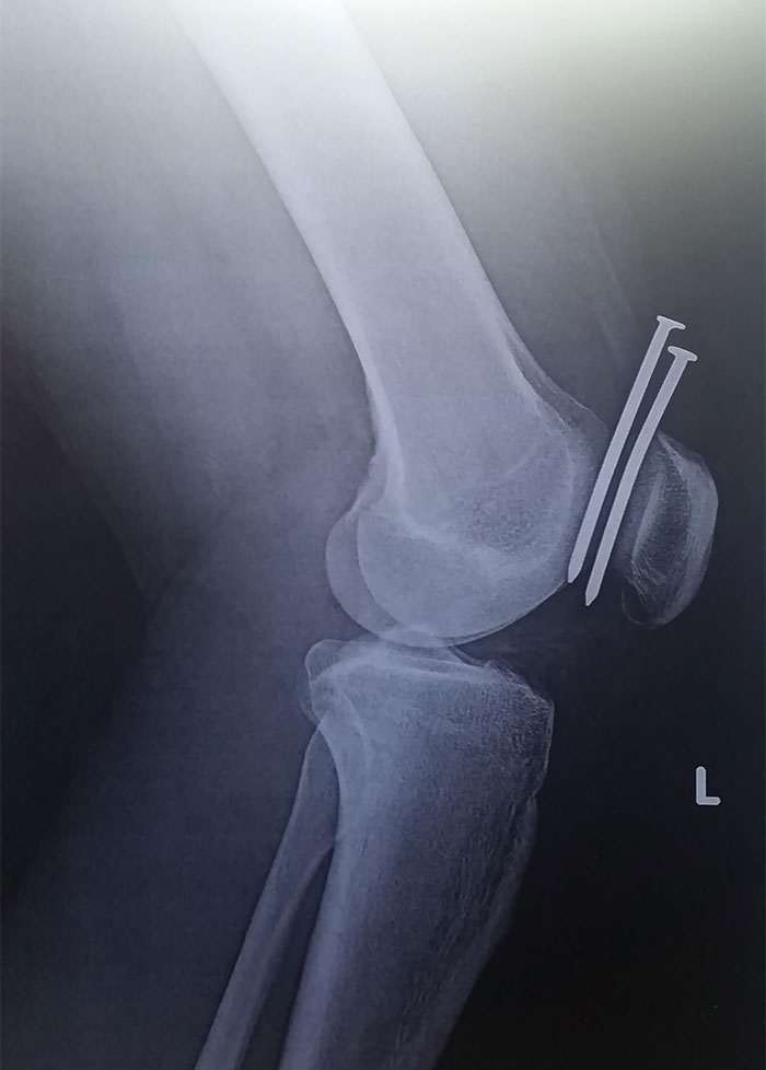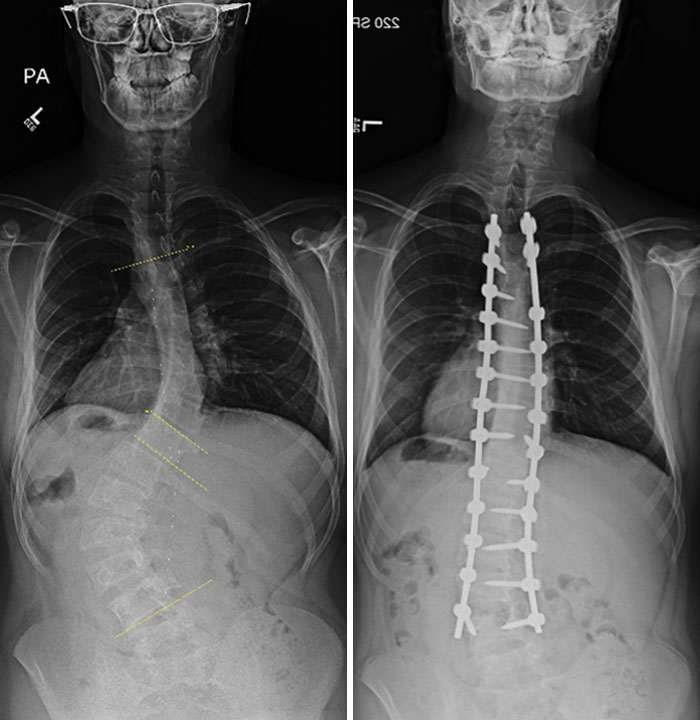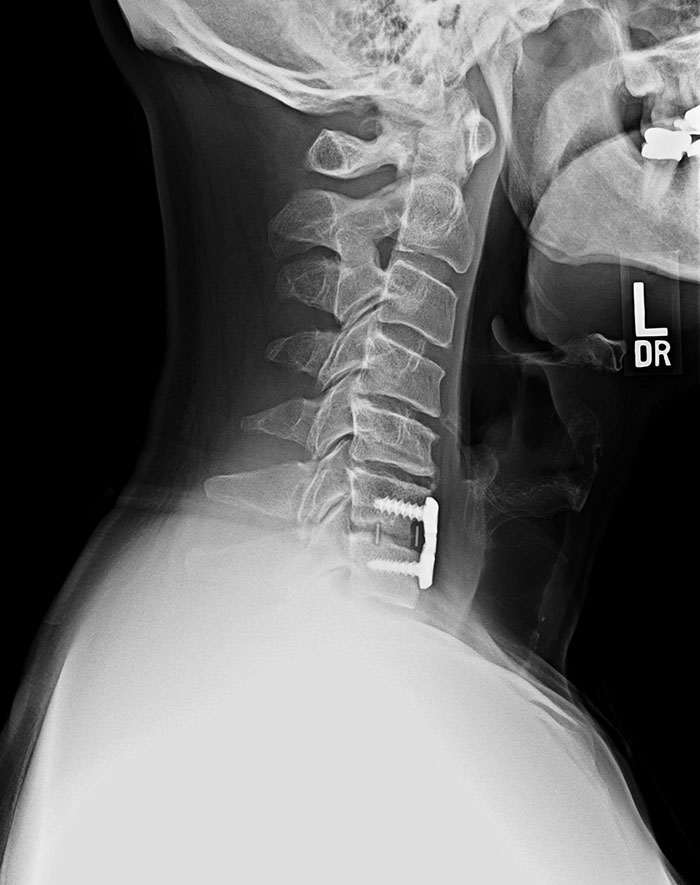 Рентген с устройством, которое фиксирует шею после перелома позвонков